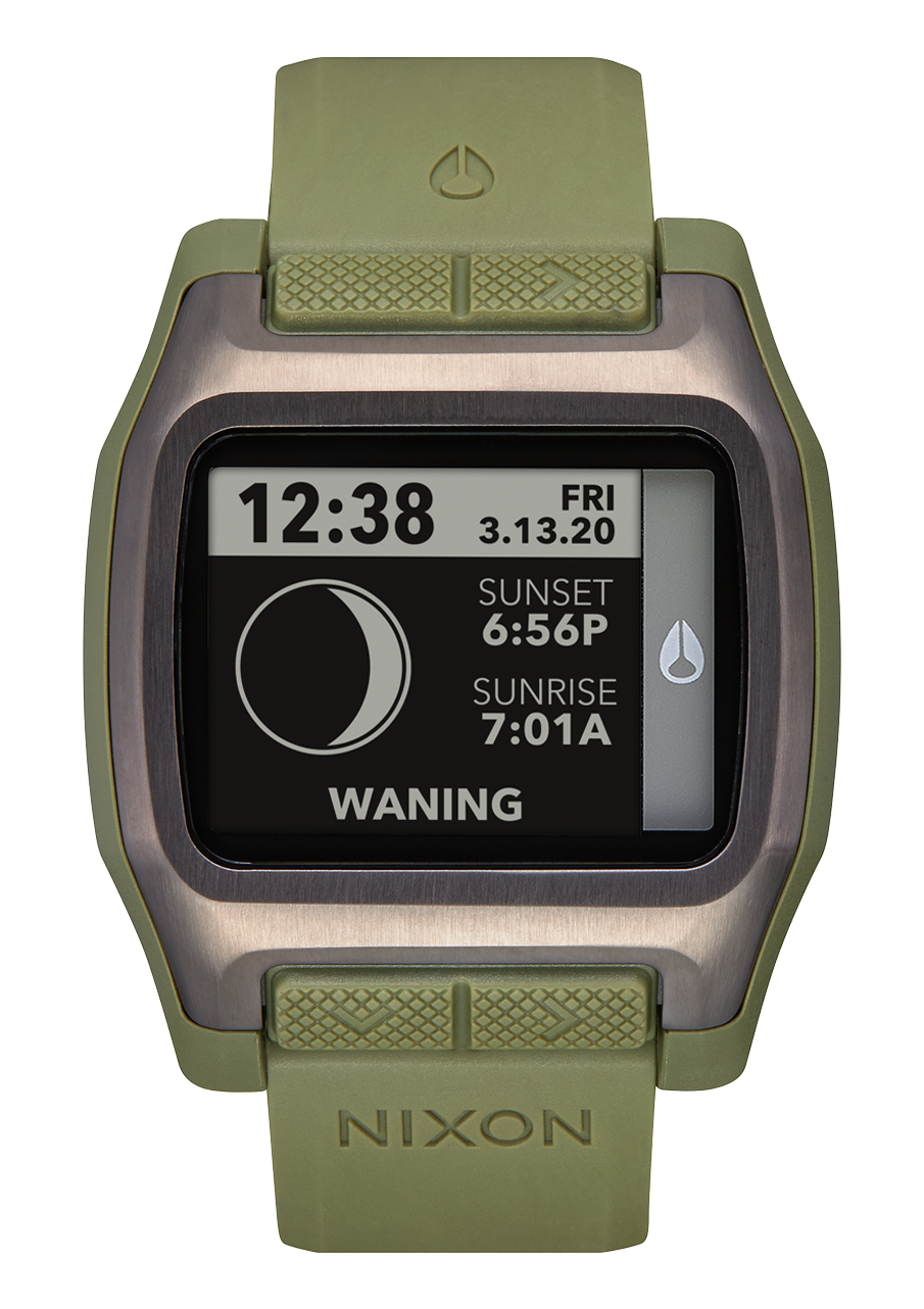 The Nixon High Tide watch comes pre-programmed with tide, sun, and moon data for over 550 global beaches, but it does not allow users to add their own custom locations.