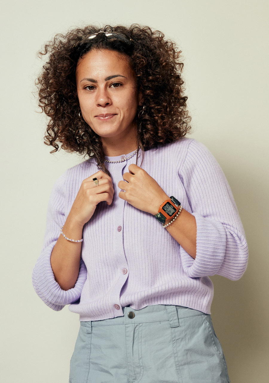 36.5mm custom recycled plastic case and stainless steel pushers with a 100 meter / 10 ATM water rating. Comes with a stainless steel screw down caseback.